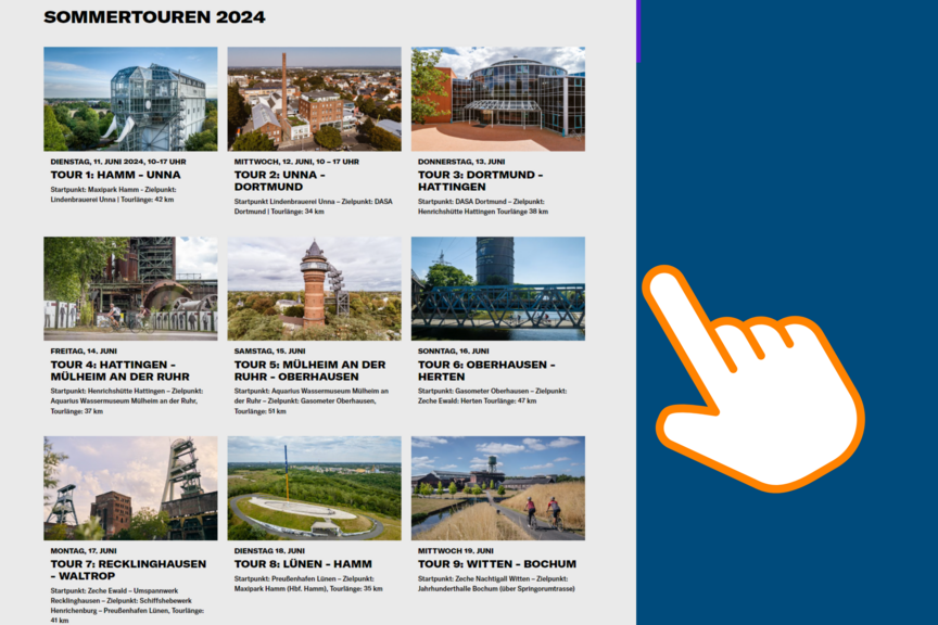 Es ist die Gelegenheit. die Industriekultur auf dem 300 km langen Radfernweg zwischen Hamm und Duisburg zu entdecken. Das 9-tägige Tourenangebot führt zu vierzehn der insgesamt 27 spannenden Ankerpunkten der Route Industriekultur.