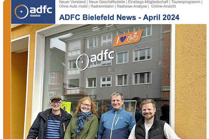 Der ADFC Bielefeld gibt den E-Mail-Newsletter „ADFC Bielefeld News” heraus, mit dem er über Aktuelles rund um den ADFC und das Radfahren in Bielefeld informiert.